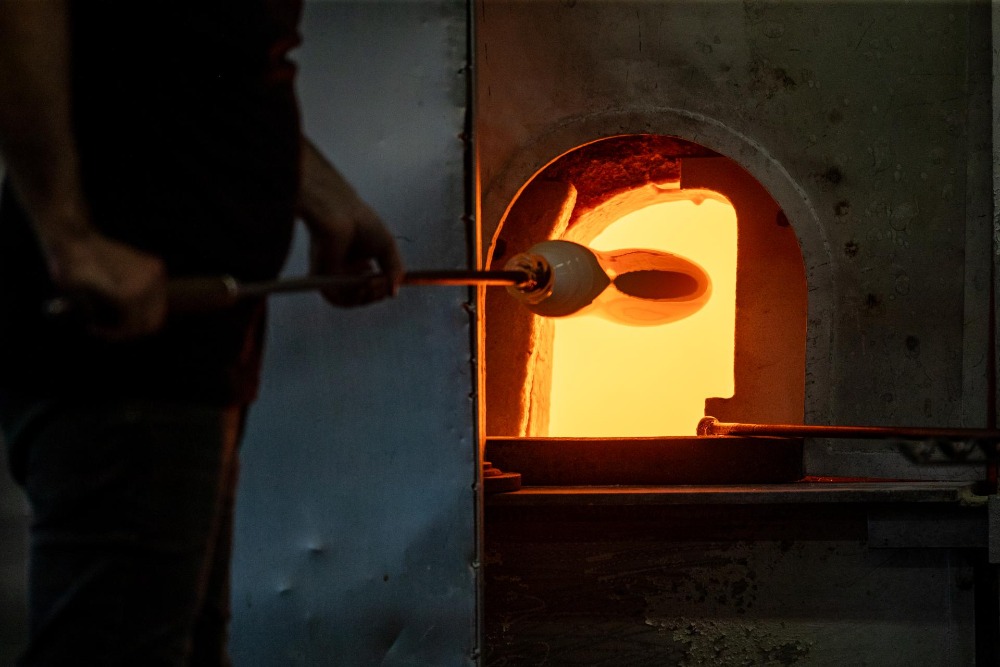 Srdcem naší tvorby je ručně foukané sklo – technika vyžadující mistrovské dovednosti, trpělivost a cit. Každé svítidlo prochází rukama zkušených sklářů, kteří sklu vdechují život a tvar. Výsledkem je jedinečné tvarosloví, textury a fascinující optické efekty, které si hrají se světlem a vytvářejí nezapomenutelnou atmosféru.